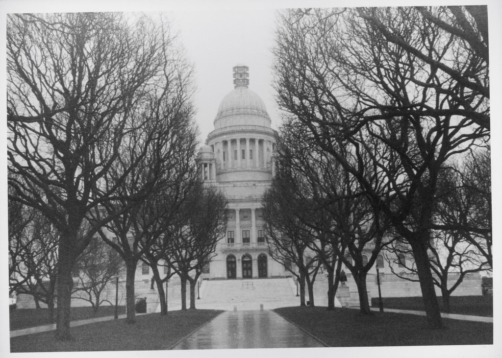 I love the effect of the trees against the clouds, and the blurred reflection of the building visible on the path leading to its entrance. This photograph was taken on a rainy day in Providence when my mum came to visit me in New England, from (old) England. We visited one of my favorite bookstores, RiffRaff, and ate Italian food for lunch.